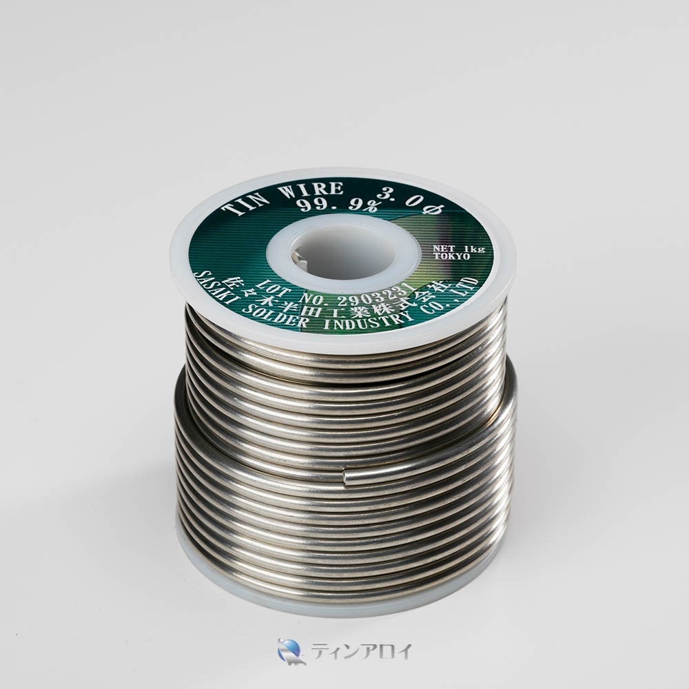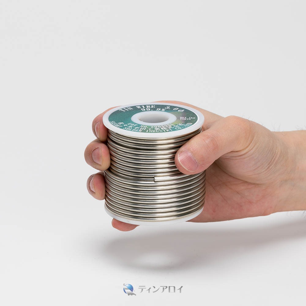 標準(Sn99.9%)の錫をお探しの方に。ペンチ等で切断、自動添加等に使用。場所を取りません。