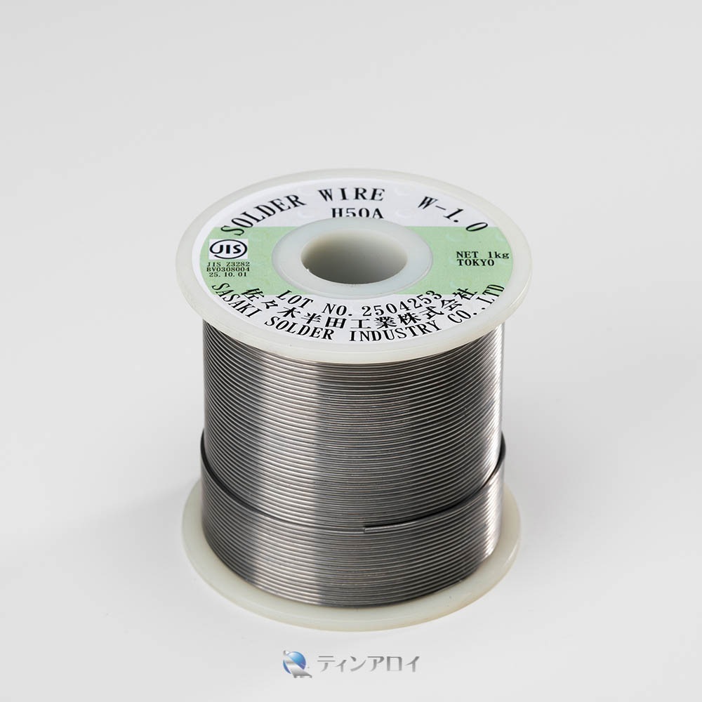 Sn50%Pb50%合金。ペンチ等で切断、自動添加等に使用。場所を取りません。融点 183℃ サイズ:1.0φ、1kg/巻