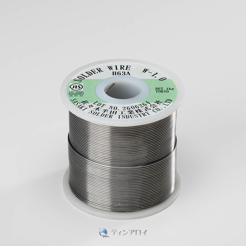 Sn63%Pb37%合金。ペンチ等で切断、自動添加等に使用。場所を取りません。融点 183℃ サイズ:1.0φ、1kg/巻