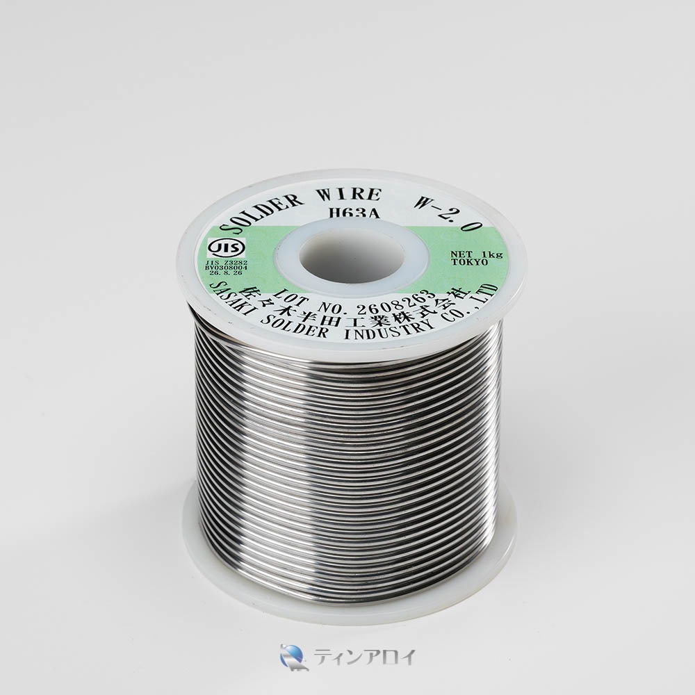 Sn63%Pb37%合金。ペンチ等で切断、自動添加等に使用。場所を取りません。融点 183℃ サイズ:2.0φ、1kg/巻