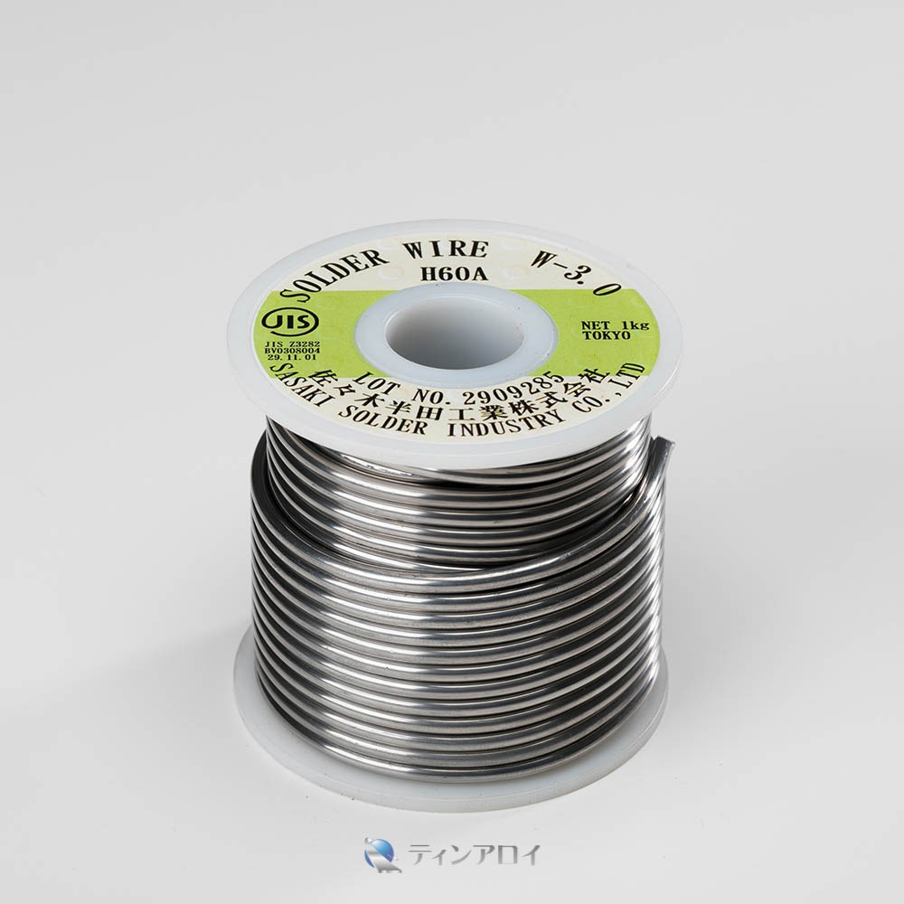 Sn60%Pb40%合金。ペンチ等で切断、自動添加等に使用。場所を取りません。融点 183℃ サイズ:3.0φ、1kg/巻
