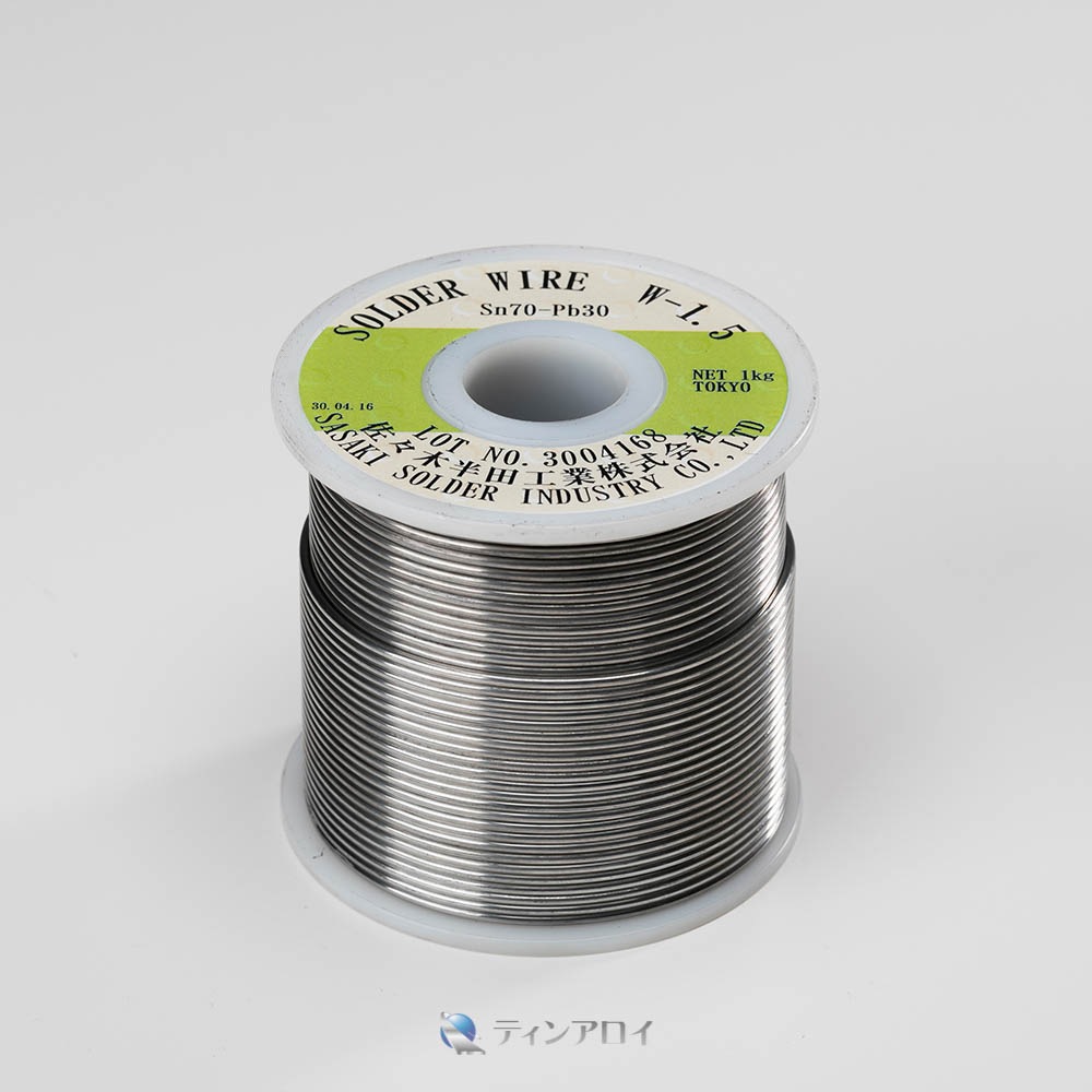 Sn70%Pb30%合金。ペンチ等で切断、自動添加等に使用。場所を取りません。融点 183℃ サイズ:1.5φ、1kg/巻