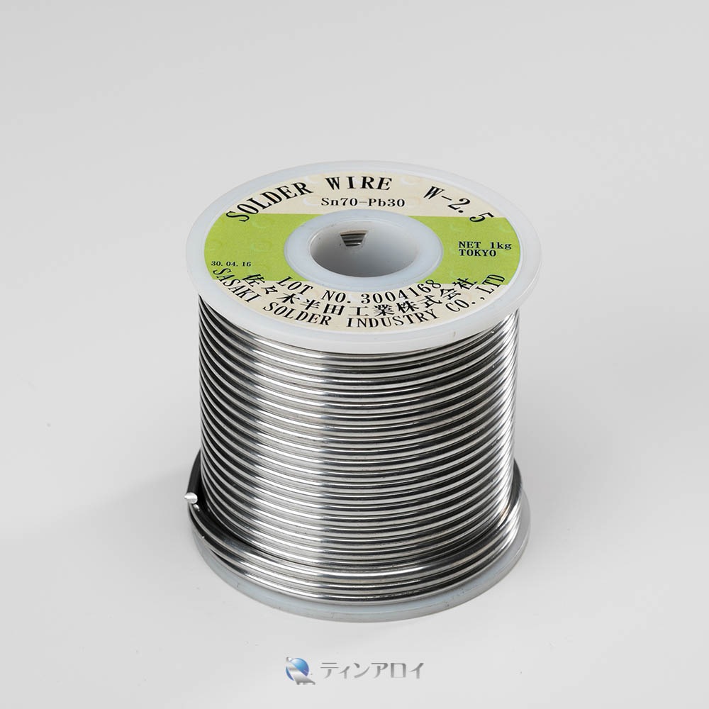 Sn70%Pb30%合金。ペンチ等で切断、自動添加等に使用。場所を取りません。融点 183℃ サイズ:2.5φ、1kg/巻