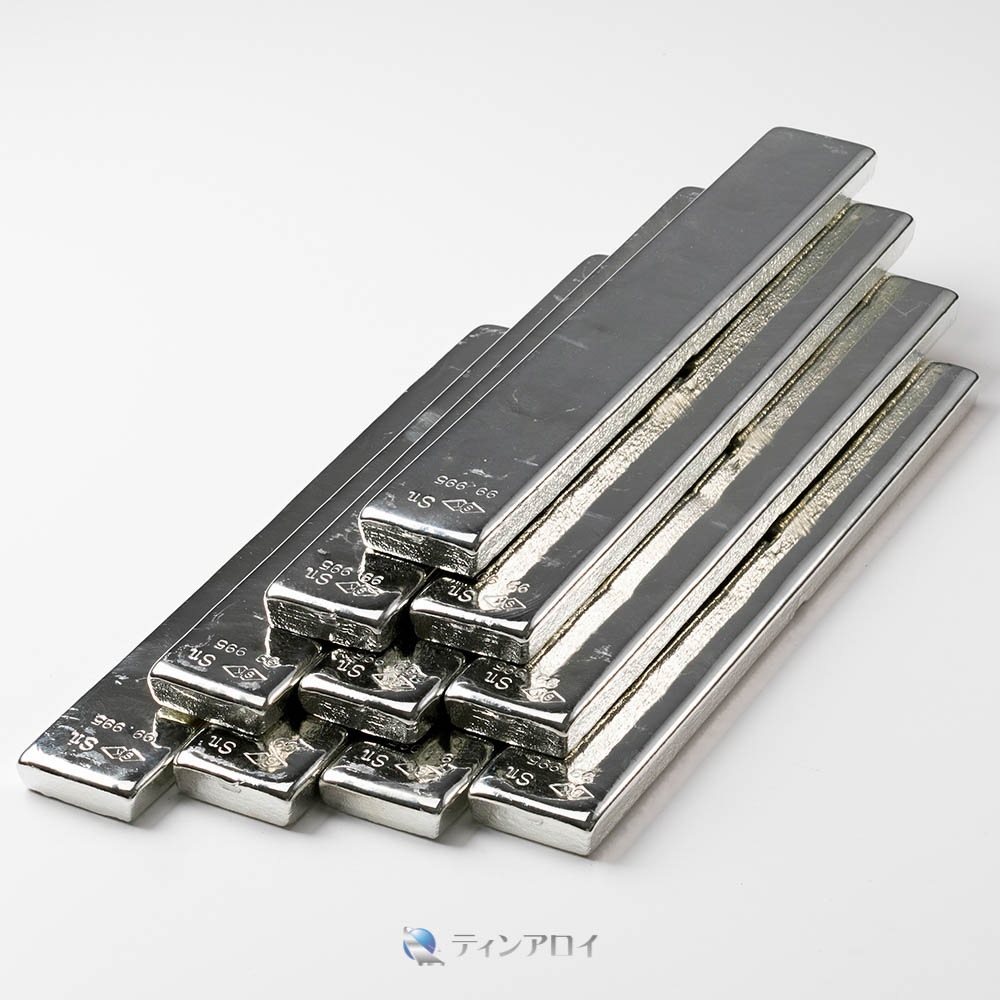 お得な10本セット。高純度(Sn99.995%up)の錫をお探しの方、 大きい溶解炉が無い方にお勧めの錫インゴット(三菱錫 純度:99.995%up)です。