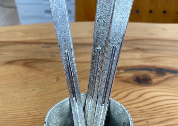 作品や教室で使われる錫はスリーナイン錫 1.2kg塊で、ご自身で溶解し、薄板にし、模様を付けた芸術的な錫板を製作されています。