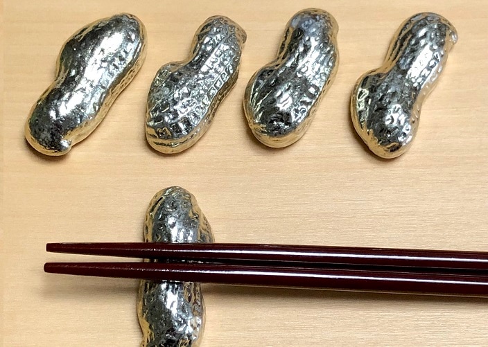 茨木県東海村にあるつじもと農園、折り紙作家の辻本京子様より使用事例をお寄せいただきました。 自ら収穫されたおおまさりという落花生で型を取り、ティンアロイの錫で箸置きを制作してくださいました。 ※販売品ではございません